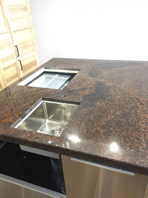 Наша компания специализируется на создании уникальных каменных столешниц на заказ, готовых воплотить в жизнь проекты любой сложности и стиля.